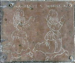 | Keywords: RolleDaughters StGilesInTheWood.JPG Monumental brass depicting the daughters of John Rolle d 1570 of Stevenstone Margerye R and Honor R St Giles in the Wood Church Devon own photo 2013 Lobsterthermidor <span class signature-talk >talk</span> 18 10 11 October 2013 UTC Rolle family Interior of St Giles in the Wood Church monuments in Devon |