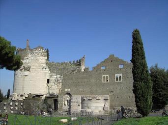 Keywords: Roma Appia Antica - mausoleo Cecilia Metella.JPG Roma via appia Antica mausoleo di Cecilia Metella e Castrum Caetani by Lalupa 2005-10-23 own Lalupa Mausoleum of Cecilia Metella Rome