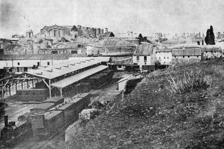 Keywords: Roma Termini 1865.jpg it Immagine della stazione di Roma presso le Terme di Diocleziano intorno al 1865 1865 La tecnica professionale n 9 settembre 1970 sconosciuto data tra 1863 e 1865 Custom license marker 2013 09 17 PD-old-100 Uploaded with UploadWizard Old passenger building Roma Termini railway station Rome in the 1860s Rail transport in Italy in the 1860s |