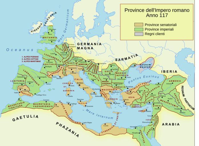 Keywords: RomanEmpire 117 it.svg Own work The maximum extent of the Roman Empire Superimposed on a physical map legend decd87 Senatorial Provinces aade87 Imperial Provinces cccccc Client States Trabajo propio Máxima extensión del Imperio Romano Superpuesto en un mapa físico legend decd87 Provincias senatoriales aade87 Provincias imperiales cccccc Reino cliente Das Römische Reich zur Zeit seiner maximalen Ausehnung unter Trajan 117 n Chr legend decd87 Senatorische Provinz aade87 Kaiserliche Provinz cccccc Klientelkönigtum L'Impero romano alla sua massima espansione sotto Traiano anno 117 legend decd87 Province senatoriali aade87 Province imperiali cccccc Regni clienti RomanEmpire_117 svg 2009-06-28 12 55 UTC RomanEmpire_117 svg Original uploader was Andrei nacu at http //en wikipedia org en wikipedia derivative work TcfkaPanairjdde <span class signature-talk >talk</span> Translation into Italian RomanEmpire_117 svg Own work The maximum extent of the Roman Empire Superimposed on a physical map Transfered from http //en wikipedia org en wikipedia 2007-</nowiki> Uploaded with derivativeFX Maps of the Roman Empire in 117 AD Maps in Italian |