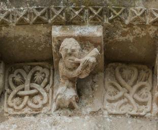 MAKE A MEME View Large Image Romanesque corbel church Saint Sulpicius Marignac Charente Maritime.jpg en Romanesque corbel at church Saint-Sulpitius Marignac Charente-Maritime France A man playing horn celtic knots fr Modillon roman de l'église Saint-Sulpice de ...
