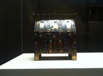 | Keywords: Romanesque Treasure of MNAC- Arqueta Crucifixi贸 (1).jpg El recorregut de la secci贸 de rom脿nic culmina amb els objectes d 檕rfebreria que constitu茂en els tresors de les esgl茅sies medievals Aquests objectes tenien una funci贸 lit煤rgica per貌 a la vegada formaven el patrimoni material dels temples el seu sistema d 檃cumulaci贸 de riquesa Les vitrines mostren una selecci贸 de peces d 櫭╬oques diverses del fons d 檕rfebreria rom脿nica del Museu Dues es dediquen a l 檃nomenada obra de Llemotges la c猫lebre producci贸 d 檕bjectes de coure esmaltats amb centre en aquesta ciutat del nord d 橭ccit脿nia The Romanesque tour in MNAC culminates with objects of gold which are the treasures of medieval churches These objects have a liturgical function but once formed the material heritage of temples their system accumulation of wealth Showcases a selection of pieces from different periods of the fund of silver Roman Museum Two are dedicated to the work of so-called Limoges famous for producing objects with enameled copper center This northern city of Aquitaine Institution Museu Nacional d'Art de Catalunya 2012-10-25 11 42 31 own PD-Art Romanesque Treasure in the MNAC |