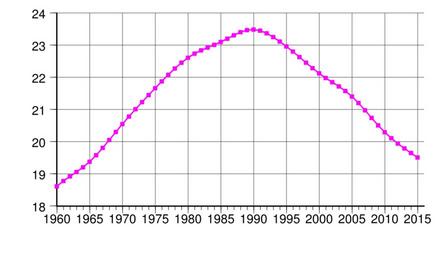 Keywords: Romania population.svg en Romania population 1960-2015 From UN estimates World Population Prospects http //esa un org/unpd/wpp/Excel-Data/population htm The 2015 Revision<br/>Y-axis Number of inhabitants in millions 2016-02-13 own Delphi234 other versions Generated with Wikimedia SVG Chart SVG Chart/box cc-zero Demographics of Romania Temporal population graphs Diagrams labelled with numbers only |