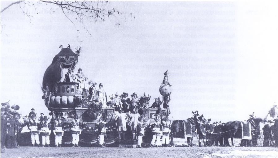 Keywords: RoMo5.jpg Der Prinzenwagen des Rosenmontagszuges 1886 entworfen von dem Bildhauer Anton Scholl Le char du Prince Carnaval lors du défilé de 1886 conçu par le sculpteur Anton Scholl Scan aus Friedrich Schütz Die moderne Mainzer Fastnacht in Franz Dumont Ferdinand Scherf Friedrich Schütz Hrsg Mainz “ Die Geschichte der Stadt zeitgenössische Photographie scan upload Martin Bahmann s u PD-old 1886 photographs Mainzer Fastnacht Horses in carnivals |
