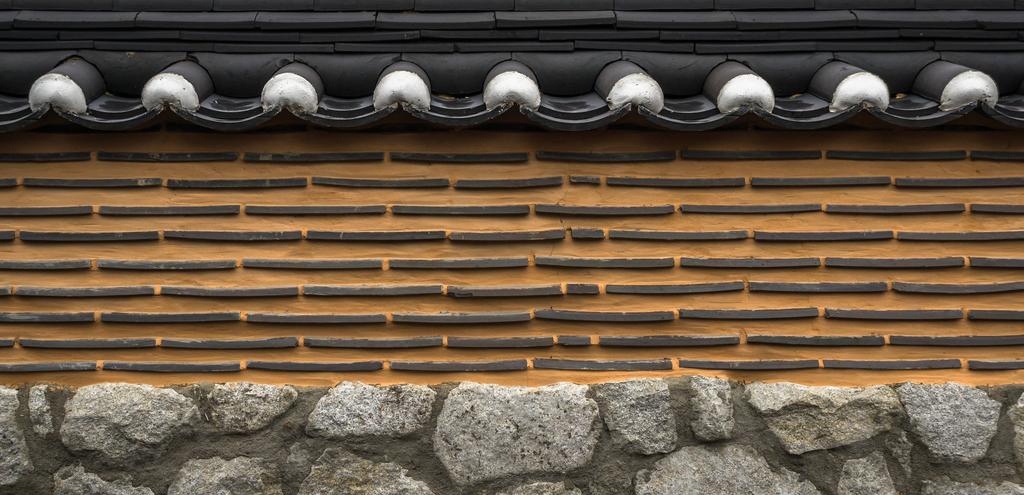 Keywords: roof tile damme wall stone stone wall ocher grey texture background construction pattern history interior wild hanok traditional korea republic of korea