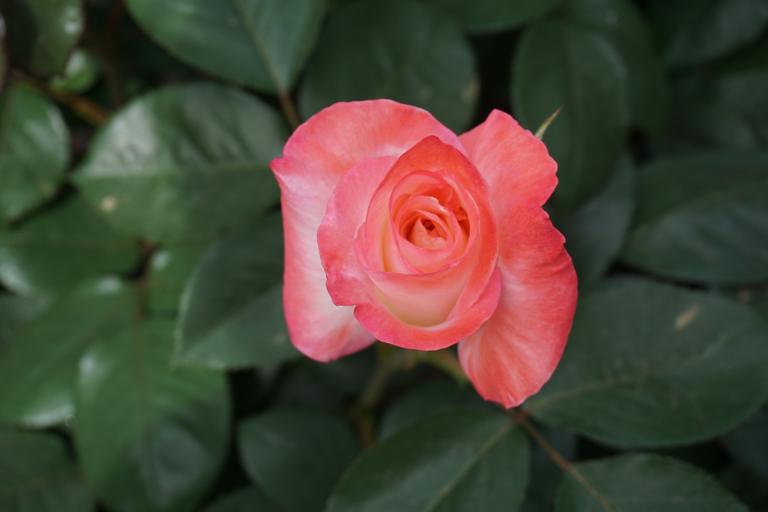 Keywords: rose blossom garden coral greenery leaves foliage flower