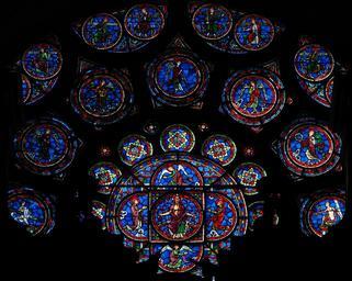 | Keywords: Rose Façade Cathédrale de Laon 150908 1.jpg fr Rose Ouest sur la façade de la cathédrale Notre-Dame de Laon Rose du Jugement Dernier Une partie date de 1220-1230 certains médaillons ont été refaits par Didron peintre verrier en 1869 et l'ensemble a été de nouveau restauré après l'explosion de la poudrière en 1870 Source le site du Ministère de la Culture own Vassil 2008-10-19 West rose window in Cathédrale Notre-Dame de Laon | ||||