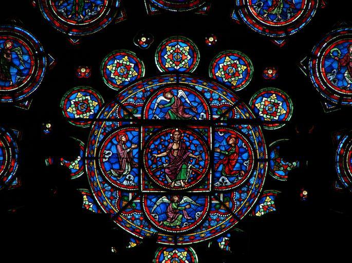 | Keywords: Rose Façade Cathédrale de Laon 150908 2.jpg fr Rose Ouest sur la façade de la cathédrale Notre-Dame de Laon Rose du Jugement Dernier Médaillon central le Christ glorieux entouré de la Vierge et de Saint Jean Une partie date de 1220-1230 certains médaillons ont été refaits par Didron peintre verrier en 1869 et l'ensemble a été de nouveau restauré après l'explosion de la poudrière en 1870 Source le site du Ministère de la Culture own Vassil 2008-10-19 West rose window in Cathédrale Notre-Dame de Laon |