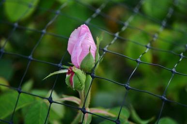 Keywords: rose fence pink flower nature romantic white leaf green plant macro grid