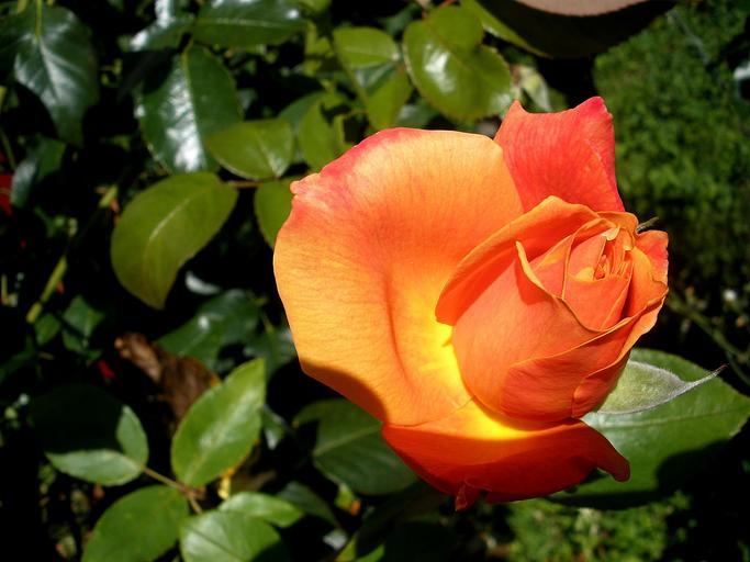 Keywords: rose flower garden orange blossom bloom colorful plant tea rose bud bright foliage