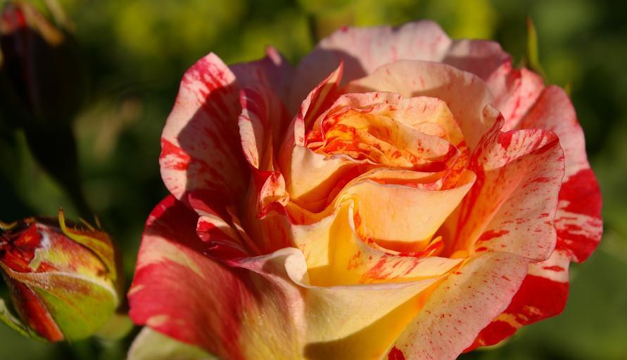 Keywords: rose painter rose bi color color change floribunda garden blossom bloom summer filigree yellow red bed