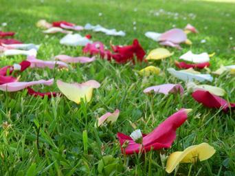 Keywords: rose petal grass spring summer flower blossom red pink green yellow white sun garden scatter display confetti fun warm happy