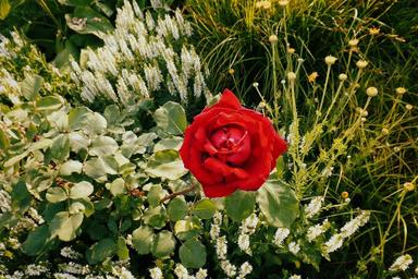 Keywords: rose red flower bed garden blossom bloom red rose rose blooms