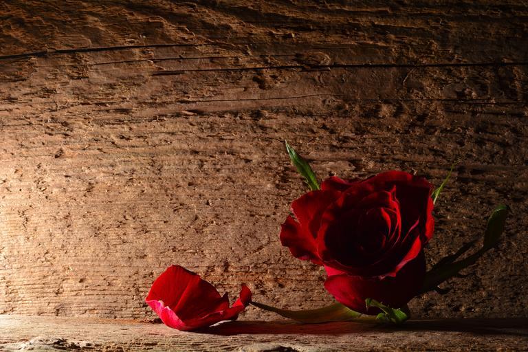 Keywords: rose red flower blossom bloom red rose rosenblatt wood background lichtspiel