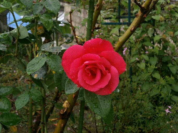 Keywords: rose red flowers after the rain
