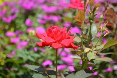 Keywords: rose single red flower nature floral petal blossom romance love valentine bloom garden macro stem plant bush summer flora botany thorns blooming color vibrant colorful outdoor bright leaf
