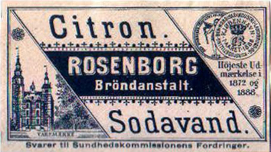 | Keywords: Rosenborg citronvand.jpg en Rosenborg Brøndanstalt former spa and mineral water brewery in Rosenborg Gardens in Copenhagen est 1831 http //www flaskesamler dk/rosenborg html author circa 1900 Anonymous-EU PD-old-70-1923 Advertisements in Denmark Rosenborg Brøndanstalt Bottle labels Food and drink advertising |