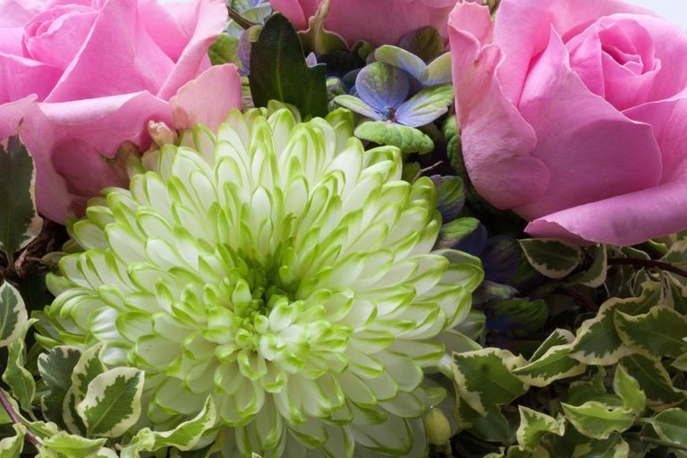 Keywords: roses composites flowers spring nature plant chrysanthemum green white pastellfarben pink bouquet fill lush decorative macro