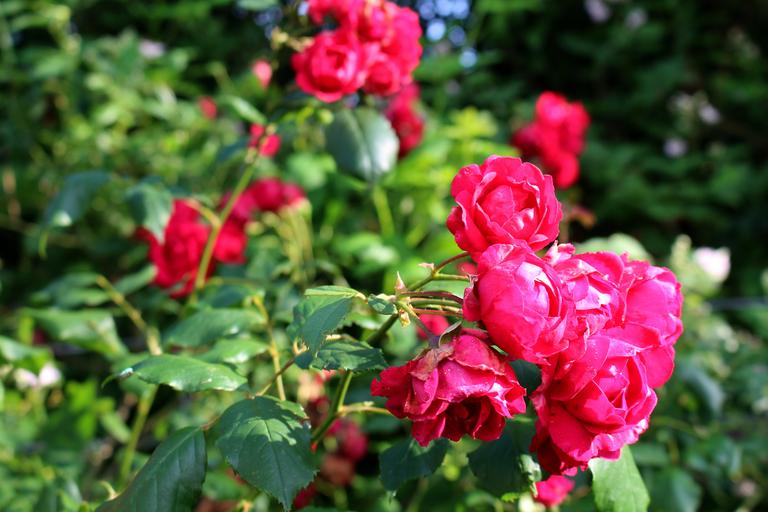 Keywords: roses pink blossom bloom flowers rose bloom heck roses nature rose family rose blooms red spiny green summer leaves plant