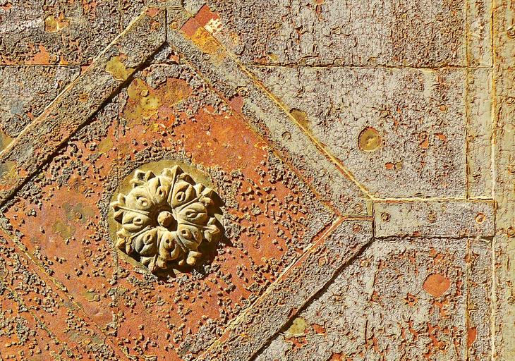 Keywords: rosette stainless door texture fitting ornament metal iron historically rusted rusty old antique architecture weathered fittings grunge corrosion flake