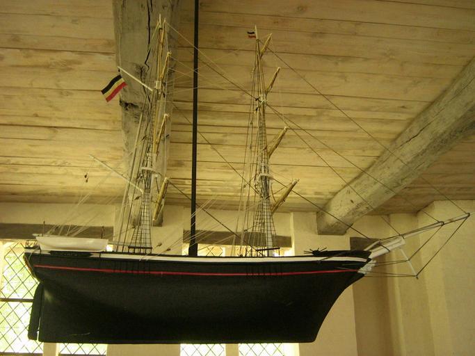 | Keywords: Rostocker-Wulfshagen-Kirche-Votivschiff-12-07-2008-009.jpg de Votivschiff von 1861 in der Kirche zu Rostocker Wulfshagen Der Matrose Suhrbier überreichte der Kirche das Modell als Geschenk und Dank für eine glückliche Heimkehr von einer Seereise own 2008-07-12 Botaurus de German Wikipedia Botaurus Church in Rostocker Wulfshagen Models of ships in churches in Germany | ||||