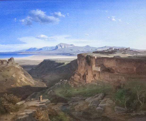Keywords: Rottmann - Sikyon mit Korinth.jpg ~ 1836 oil on canvas Institution Neue Pinakothek object history 1841 durch König Ludwig I aus der Sammlung Krenze erworben credit line accession number WAF 843 own photo by Szilas in the Neue Pinakothek PD-old-100 Carl Rottmann German paintings in the Neue Pinakothek Landscape paintings of Greece 1830s landscape paintings