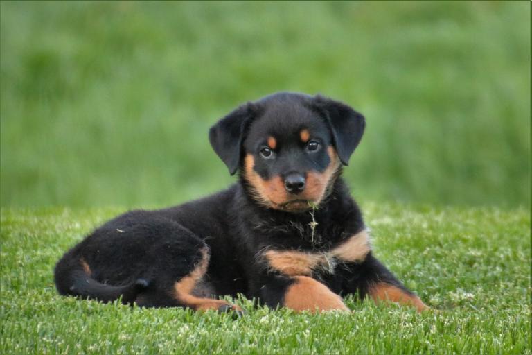 Keywords: rottweiler dog puppy sweet dog lying animal summer pet cute