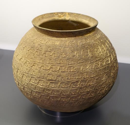 Keywords: Round-bottomed pottery pot with double-f pattern, Bronze period, from M215, the pre-Qin graveyard, Hengling Shan, Boluo - Hong Kong Museum of History - DSC00754.JPG en Exhibit in the Hong Kong Museum of History Hong Kong This artwork is old enough so that it is in the public domain Photography was permitted in the museum without restriction 2014-07-27 01 29 00 own Daderot other versions PD-100 cc-zero Chinese ceramics in the Hong Kong Museum of History Uploaded with UploadWizard Ceramics of the Bronze Age in China |