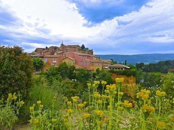 Keywords: roussillon village flowers blooming red france provence historic tourism sky famous