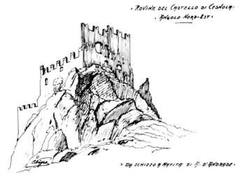 Keywords: Rovine del castello di cesnola nigra.tiff disegno di Carlo Nigra 1856-1942 sulla base di uno schizzo di Alfredo D'Andrade 1839-1915 Angolo nord-est rovine del Castello di Cesnola Settimo Vittone Piemonte Italia Carlo Nigra Torri e castelli e case forti del Piemonte dal 1000 al secolo XVI La Valle d'Aosta ed Musumeci Quart AO 1974 figura 3 before 1942 Carlo Nigra 1856-1942 PD-old-70 Architectural drawings by Carlo Nigra based on drawings by Alfredo D'Andrade Castello di Cesnola PD-old Torri e castelli e case forti del Piemonte dal 1000 al secolo XVI La Valle d'Aosta |