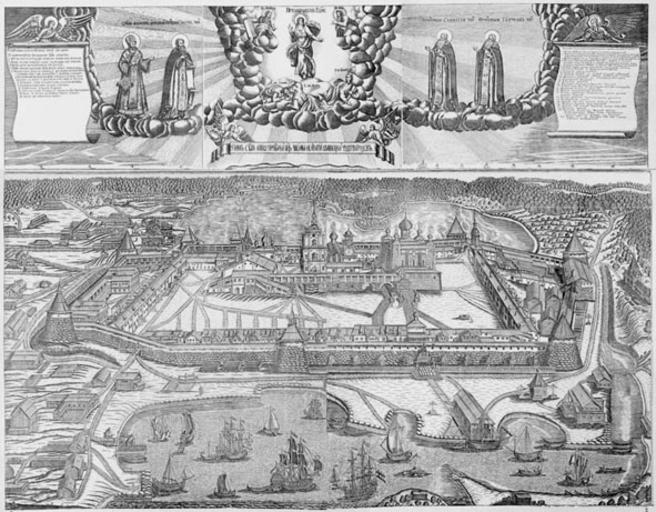 Keywords: Rovinsky - Solovetsky monastery 1884 - 03.jpg ru Большой вид Соловецкого монасты я г ави ованный на 7 досках Иван и Алексей Зубовы 1744 Alexey Zubov
