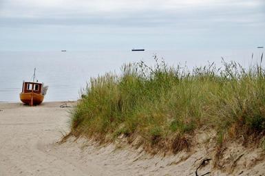 Keywords: rowboat boat sea dune dunes sand beach path the trail