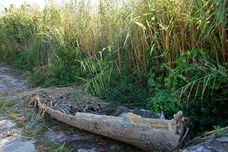Keywords: rowboat the wreck of the wreck old reeds broken ruined barge rotten