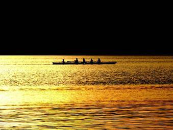 Keywords: rowing boat rowing quad gold water lake abendstimmung nature recovery rest sun light mood shadow silhouette