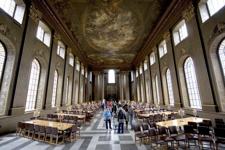 Keywords: royal naval college london england great britain paintings art columns architecture chairs tables interior design windows ceiling destinations landmark historical