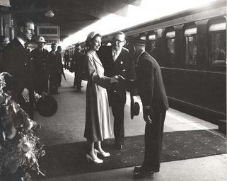 | Keywords: archives state records nsw staterecordsnsw newsouthwales blackandwhite royal visits royalvisits railway station railwaystation bathurst central west centralwest queen queen elizabeth ii queenelizabethii prince phillip princephillip locomotive platform people staff trains geotagged geo:lat=-33.4256 geo:lat=334256 geo:lon=149.5833 geo:lon=1495833 black and white Title: The Queen shakes hands with Station Master Mr Louis Le Breton at Bathurst Station ready to board the Royal Train Dated: 12/02/1954 Digital ID: 17420_a014_a014000168 Rights: www.records.nsw.gov.au/about-us/rights-and-permissions We'd love to hear from you if you use our photos. Many other photos in our collection are available to view and browse on our website using Photo Investigator. Title: The Queen shakes hands with Station Master Mr Louis Le Breton at Bathurst Station ready to board the Royal Train Dated: 12/02/1954 Digital ID: 17420_a014_a014000168 Rights: www.records.nsw.gov.au/about-us/rights-and-permissions We'd love to hear from you if you use our photos. Many other photos in our collection are available to view and browse on our website using Photo Investigator. |