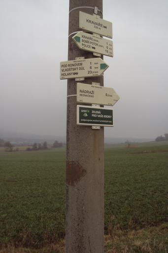 Keywords: Rozcestník u Kravař.JPG cs Nad Kravařemi směrem k Ronovu a nádraží je tento rozcestník own Zákupák 2014-01-01 Hiking and footpath fingerposts in Česká Lípa District Kravaře Česká Lípa District