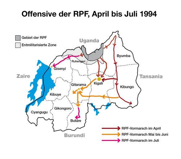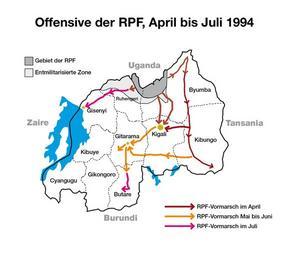 Keywords: RPF Buergerkrieg Ruanda 1994.jpg Vormarsch der Rebellenarmee RPF in Ruanda 1994// Offensive of RPF in Rwanda 1994 self-made Daten aus//Data from Alan J Kuperman The limits of humanitarian intervention Genocide in Rwanda Brookings Institution Press Washington DC 2001 ISBN 0-8157-0086-5 Seite//page 43 2008-02-24 Cosmicgirl Maps of Rwanda |