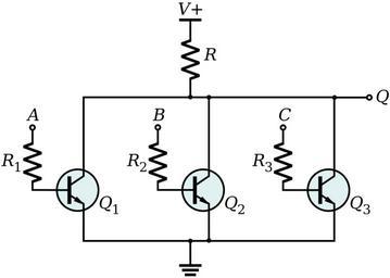 | Keywords: RTL 3-Input NOR Gate.svg NOR gate built using Resistor-transistor logic Gates just like this but on integrated circuits were used in the Apollo Guidance Computer and can be seen on the original schematics Dwg No 2005011 can be found http //klabs org/history/ech/agc_schematics/logic/5011-1 jpg here own Inductiveload 2009-01-18 Resistor-transistor logic NOR gates Resistor circuits |