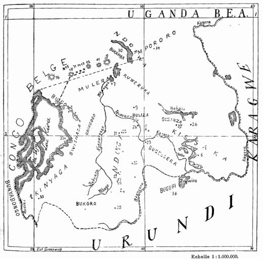 Keywords: Ruanda Prov 1912 B002a.png en Map of the Ruanda area of the then German colony German East Africa with important lakes provinces and localities mentionned in the given article Carte du Ruanda où sont indiqués le noms des provinces et des localités cités dans cet article de Karte des Ruanda-Gebiets der damaligen Kolonie Deutsch-Ostafrika mit wichtigen Seen Provinzen und Örtlichkeiten sofern diese im oben genannten Artikel erwähnt werden Alexandre Arnoux Le Culte de la Société Secrète des Imandwa au Ruanda In Anthropos St Gabriel-Mödling bei Wien vol 7 No 3 1912 p 273ff Alexandre Arnoux Padre de Pères Blancs en Kabgayi 1912 PD-old B E A British East Africa <ins>Aux nombres dans la carte original </ins> <br /> 1 Kigáli; 2 Nánza; 3 Kabgáyi; 4 Isávi; 5 Núndo; 6 Nzáza; 7 Ruáza; 8 Mibirizi; 9 Ruhindo 10 Karisimbi volcan; 11 Kahinga id ; 12 Sabino id ; 13 Segéša id ; 14 Ndéndule id ; 15 Múkurumúbi id ; 16 Niragongo; 17 Burágurabána; 18 Bihána; 19 Kitisi; 20 Ku Runšúnšu; 21 Muzirángegera; 22 Akákibogo; 23 Kúli kágono; 24 Ngamba; 25 Mášoza ya Kimana; 26 Kwa širangabo; 27 Muširarungu; 28 Ngowa Cong B ; 29 Kisenyi; 30 Bukambo; 31 Bisóko; 31 Bisòko; 32 Intémbabagóyi; 33 Sources d'eau chaude; 34 Kwa Nirakahúmuza; 35 Mwúlire; 36 Buzégezege bgo harúguru; 37 Kimámagana; 38 Naruténgeli 1912 maps Old maps of Rwanda Lakes of Rwanda Lake Kivu Maps of the German East Africa White Fathers |