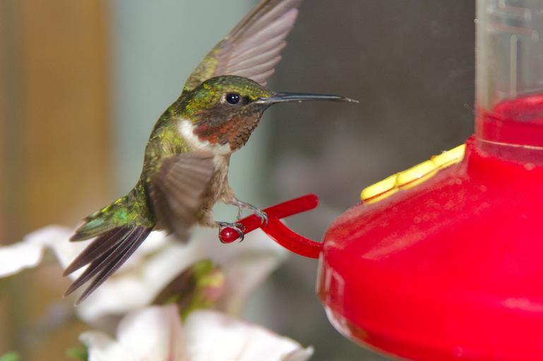Keywords: Ruby-throated hummingbird on feeder 02.jpg 47 119 -88 580 en A ruby-throated hummingbird Archilochus colubris on a feeder 2012-06-03 own Scottk cc-zero Archilochus colubris male Uploaded with UploadWizard