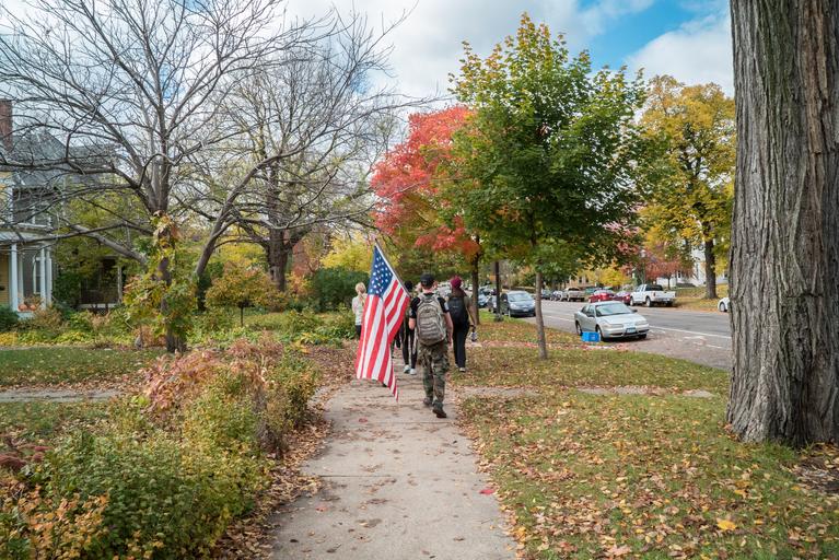 Keywords: ruck march army marine navy airfare military brothers rucksack saint paul st paul tree america usa flag patriot fall sidewalk
