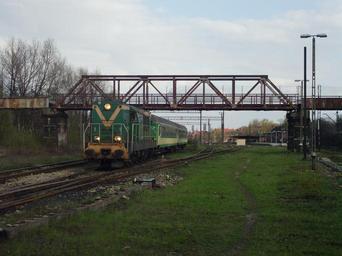 Keywords: Ruda Slaska Chebzie tourist train.JPG Ruda Śląska-Chebzie before leaving towards Zabrze Biskupice along route 189 2012-04-21 own Jan Pešula cc-zero Uploaded with UploadWizard Chebzie train station Railway line 189 Poland SM31 of PKP Cargo