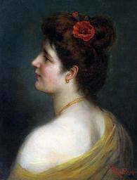 Keywords: Rudolf Epp Junge Frau mit Klatschmohnblüten.jpg Oil canvas cm 46 37 5 object history credit line ~ lower right signature accession number http //www hofbauer-media de/ PD-art-100 Profile portraits of women Papaver in art Portrait paintings of females with flowers Temporary for Cat-a-lot - Female humans Shoulders in art Nape Hair in art People with flowers Human noses in art Females with neutral background Female faces in profile Females looking left in art People with jewellery People with plants Oil paintings of women Rudolf Epp Women facing left in art