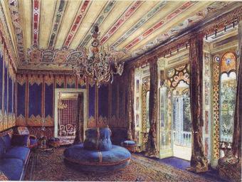 Keywords: Rudolf von Alt Villa Huegel Wien.jpg Artwork title The Turkish Salon Villa Hügel Hietzing Vienna 1855 Blue divan and borne-shaped seat carpet chandelier curtains watercolor Thomas Le Claire Kunst-Galerie date 1877 creator Rudolf von Alt Other versions Austria in art by Rudolf von Alt Zimmerbilder Interiors of palaces in art Wallpapered rooms 1855 Salons in art 1855 Turquerie Bornes furniture 1877 Divans furniture Blue furniture 1870s interiors in art 19th-century furniture Historical images of Hietzing Decorated walls Paintings of buildings in Vienna PD-old-100 |