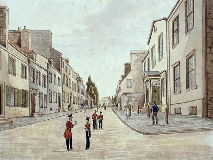 Keywords: Rue Saint-Louis, Quebec, 1830.jpg fr La rue Saint-Louis Québec vers 1830 aquarelle de James Pattison Cockburn<br> à droite Maison Dunn<br> « Vers 1830 James Pattison Cockburn réalise cette aquarelle représentant la rue Saint-Louis en direction de la porte du même nom Cette voie tracée dès le XVIIe siècle doit son nom au fort construit par Samuel de Champlain en 1620 Deux siècles plus tard elle est devenue un lieu de résidence recherché La rue Saint-Louis parallèle à la rue Saint-Jean est beaucoup plus élevée bien aérée et agréable et c ™est de beaucoup la partie la plus belle de la ville; aussi la plupart des principaux membres du gouvernement de la province et des personnes du premier rang y résident La portion comprise entre la rue Sainte-Ursule au premier plan et les fortifications ne fait pas exception si l ™on en croit l'Å“uvre de Cockburn on aperçoit notamment à droite la résidence d ™inspiration palladienne de Thomas Aston Coffin édifiée en 1795-1796 » “ Jérôme Ouellet 1830 http //www quebecurbain qc ca/2015/09/25/la-rue-saint-louis-vers-1830/ quebecurbain qc ca - MIKAN no 2895731 BAC - https //histoireurbaine wordpress com/2015/09/24/la-rue-saint-louis-vers-1830/ - https //journals lib unb ca/index php/MCR/article/view/17083/22882 - https //www facebook com/permalink php story_fbid 943442182383358 id 157594394301478 Creator James Pattison Cockburn other versions 46 810631 -71 209236 PD-100 Uploaded with UploadWizard Rue Saint-Louis Quebec City Quebec City in the 1830s James Pattison Cockburn Maison Dunn Rue Sainte-Ursule Quebec City |