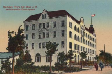 Keywords: Rügen Postkarte 019.jpg Prora bei Binz a R Kaufmännisches Erholungsheim http //www zeno org - Zenodot Verlagsgesellschaft mbH Arthur Schuster Stettin ~ 1900 Postcards of Rügen Prora Postcards of hotels in Germany Former buildings and structures in Mecklenburg-Vorpommern Bäderarchitektur PD-old Images from zeno org |