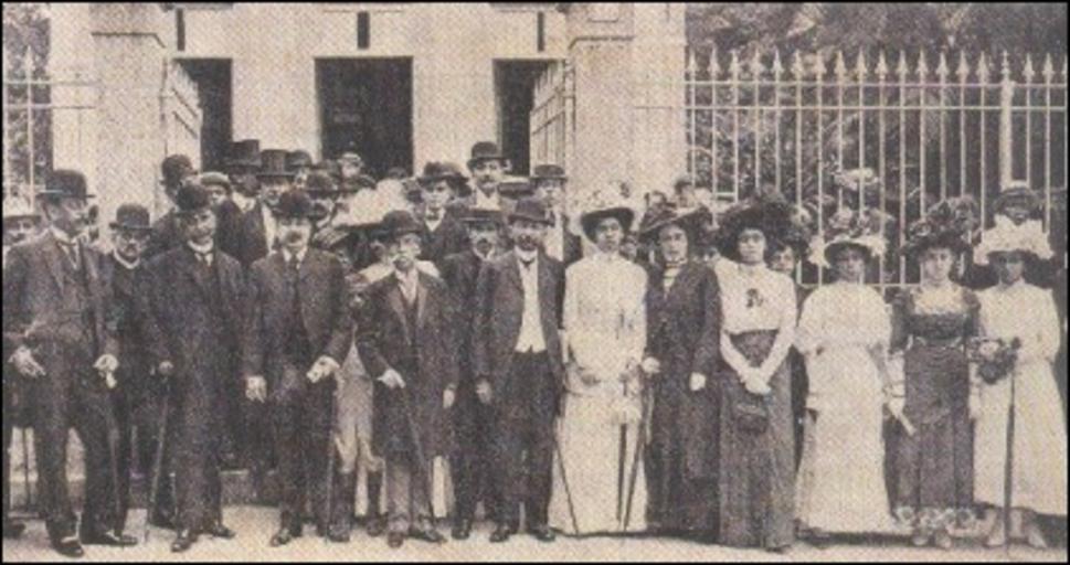 Keywords: Rui casa machado.jpg Rui Barbosa segundo presidente da Academia lidera uma visita à casa do primeiro presidente Machado de Assis à rua Cosme Velho 18 - hoje demolida - em 9 de outubro de 1910 dois anos após a morte daquele que era chamado de mestre até mesmo por seus colegas http //www academia org br/abl/cgi/cgilua exe/sys/start htm infoid 4328 sid 2 tpl printerview 1910 Auréola PD-Art Machado de Assis Rui Barbosa Academia Brasileira de Letras Rio de Janeiro city 1910 photographs Fashion in 1910 |