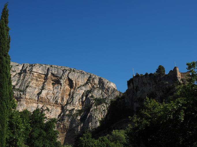 Keywords: ruin of philippe de cabassolle castle burgruine ruin fontaine-de-vaucluse france provence castle of philippe de cabassolle rock gorge karst area karst