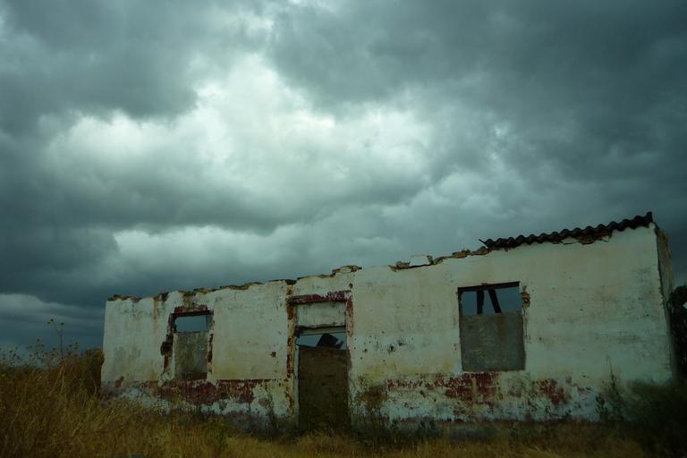 Keywords: ruins clouds old uninhabited abandoned storm field desolation building house soledad sky landscape collapse spring silence grass grey facade